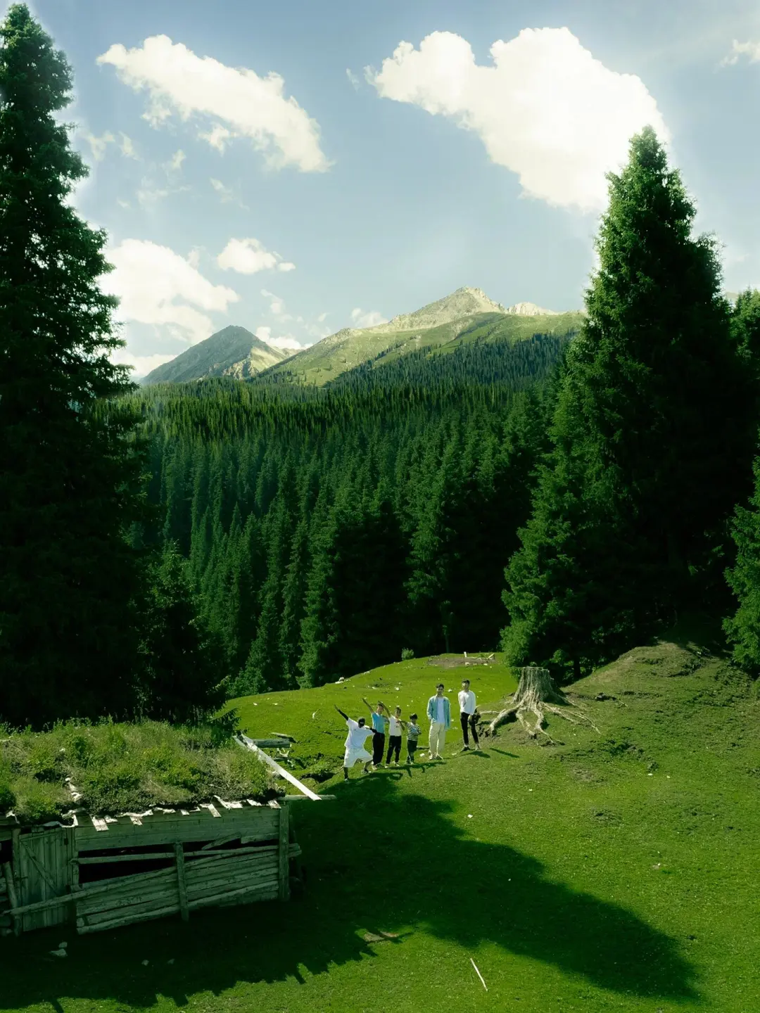 嵌在草原之中。它保留了原始的哈萨克族村落风貌,木质的房屋错落有致地分布在山间,炊烟袅袅升起,给这个宁静的小村落增添了几分生活的气息。漫步于乌孙古道欣赏