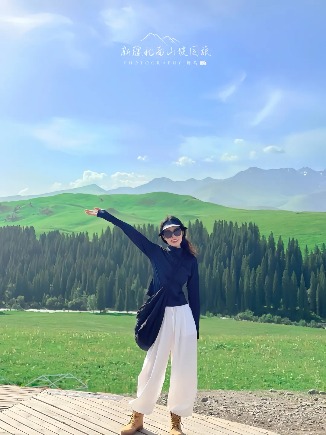 早餐以后出发前往那拉提景区。途中欣赏天山山脉的壮丽风光,感受新疆的广袤与雄伟。那拉提空中草原,仿佛是天山脚下的一片绿色海洋,广袤无垠,一望无际。站在草原之上,眼前是连绵起伏的绿色波浪,微风拂过,草浪翻滚,仿佛大地在呼吸。远处,天山的雪峰高耸入云,洁白的雪顶在阳光下闪耀着银光,与翠绿的草原形成鲜明的对比,宛如一幅天然的水墨画。在这里,时间仿佛变得缓慢,宁静的氛围让人忘却尘世的喧嚣,只剩下内心的宁静与祥和。