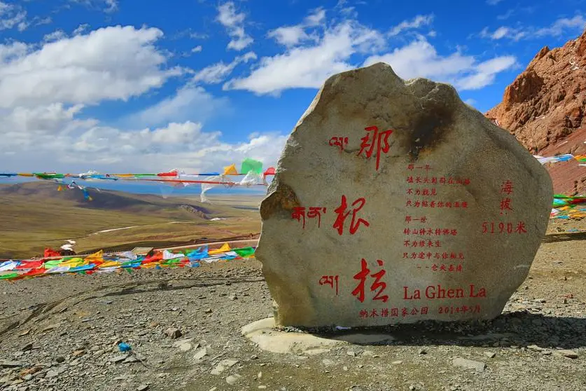 早起从班戈县出发,感受蓝天白云雪峰下藏北草原苍茫辽阔的自然风光,纳木措犹如一颗蓝宝石般镶嵌在如茵的万里羌塘草原上。遥望四野,你的心里顿时会涌起雄浑、苍茫、辽阔的感觉。纳木措湖边,有很多用石块堆起的玛尼堆。抬眼望去,头顶深邃而疏朗的蓝天,与纯净的湖水浑然一体;远处雄奇皑皑的雪峰犹如琼楼玉宇,忽隐忽现;湖边的草地犹如一张巨大的绿毯,无边无际。后翻越那根拉山口,远观念青唐古拉山返回圣城拉萨统一散团。